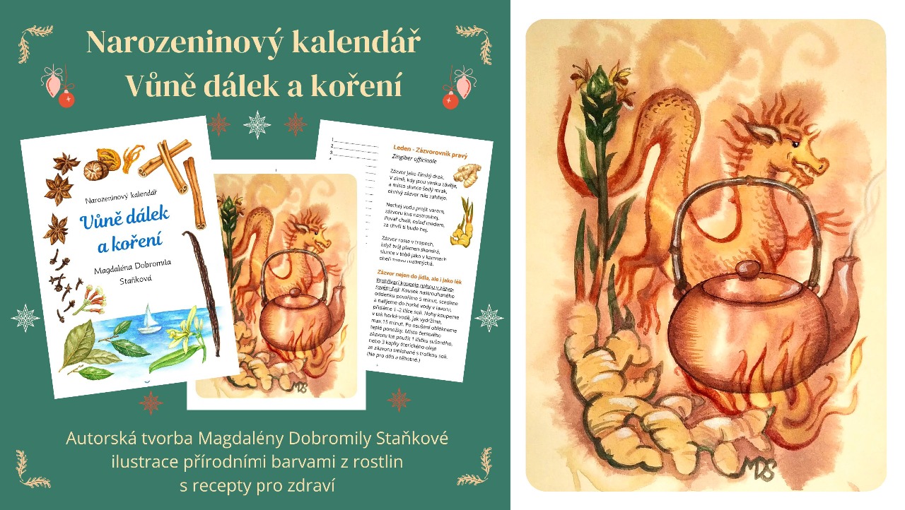 Zázvor najdete také na Fleru v mém autorském kalendáři Vůně dálek a koření, malovaném přírodními barvami z rostlin. www.fler.cz/madoby