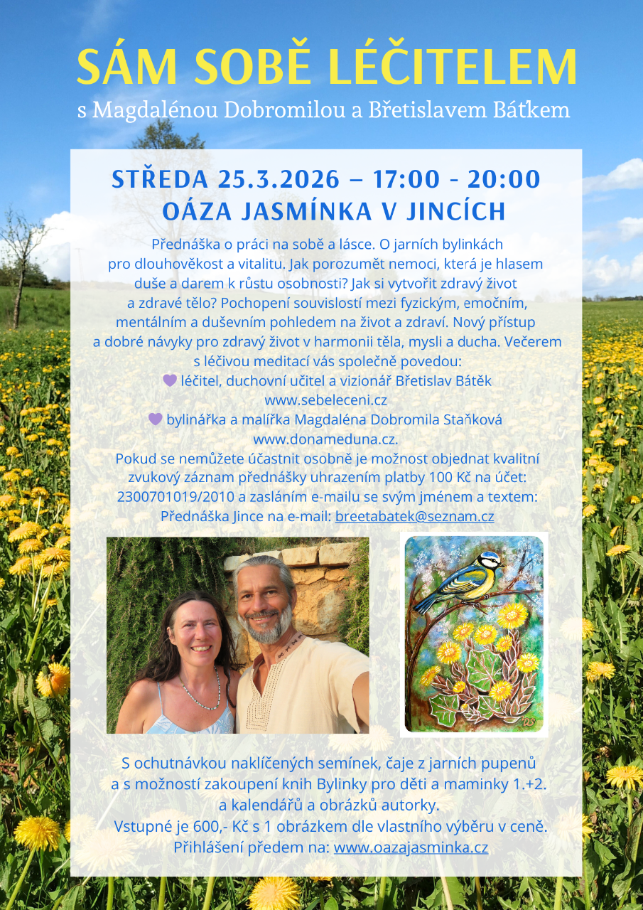 Lidstvo vstoupilo do závěrečné etapy vzestupu do vyšší dimenze. Seminář o všech souvislostech naší multidimenzionality, energetiky planety a našeho probuzení do svojí duchovní podstaty. Co je překážkou a co každého na svojí individuální cestě vzestupu podpoří? Jaké pomoci se nám dostává od vesmírných civilizací světla pro zdárné ukončení projektu lidstvo a jeho završení galaktickou svatbou? Součástí semináře je řízená léčivá meditace pro otevření srdce, ukotvení vyšší vibrace a vytvoření radostné reality míru, rozkvětu a lásky pro všechny. Cena: 500 Kč,- přihlášení předem na: